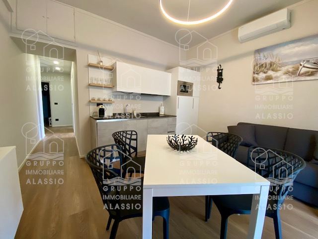 Proponiamo in Laigueglia bilocale appena ristrutturato disponibile per il mese di luglio 2026. L'alloggio è sito al primo piano di un bel condominio con ascensore. Internamente è composto da soggiorno con angolo cottura, bagno finestrato e camera matrimoniale. Balcone con ottima esposizione e scorcio di vista mare. Si raggiunge il mare in 2 minuti a piedi. Massimo 3 ospiti.