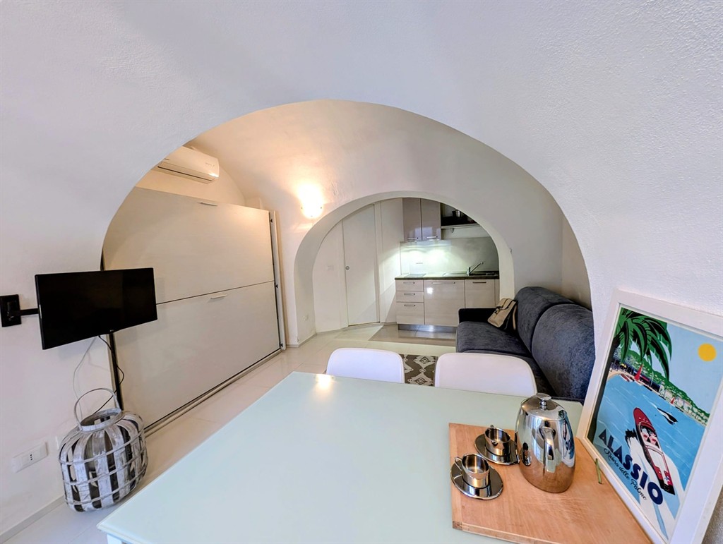 Alassio, in centro storico, proponiamo ampio monolocale, recentemente ristrutturato, con soffitti a volta e completamente arredato. L'immobile è dotato di corte esterna privata. IMMOBILE ACCATASTATO COME C/2.