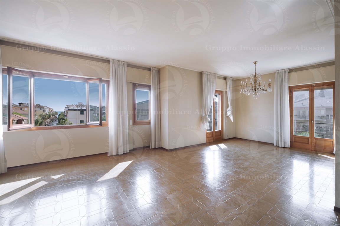 Alassio, a 500 metri dal mare, in condominio esclusivo, proponiamo appartamento di mq. 170 circa, in buone condizioni. L’appartamento è situato al 3° ed ultimo piano, con esposizione su tre lati. Internamente abbiamo un ingresso e salone di mq. 50 circa, 2 bagni, 3 grandi camere da letto, una cucina abitabile e tre grandi balconi. L’alloggio è frazionabile in più unità immobiliari. Ottima esposizione. Richiesta Euro 780.000