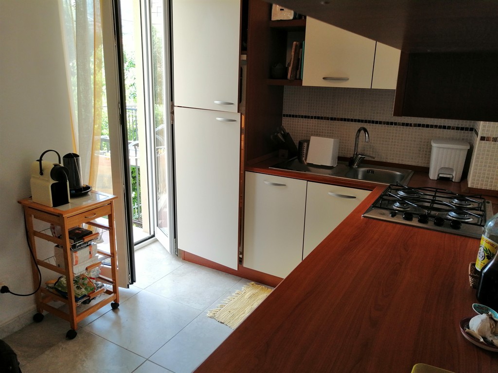 In piccolo stabile al primo piano con ascensore, appartamento ristrutturato con impianti, pavimenti e infissi nuovi, composto da soggiorno con angolo cottura, due camere matrimoniali, bagno finestrato, due balconi e ripostiglio. Possibilità di avere in affitto box auto poco distante. Ideale come casa vacanza, poco distante dal mare e comoda a tutti i servizi.