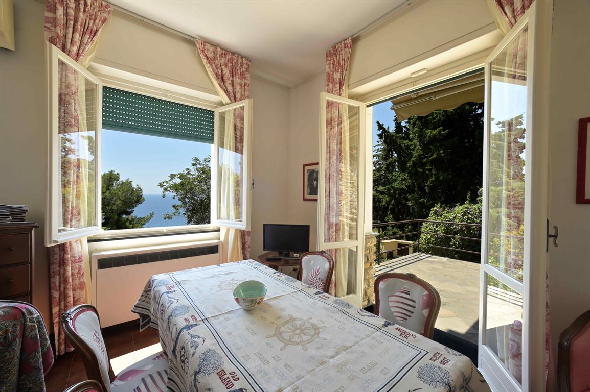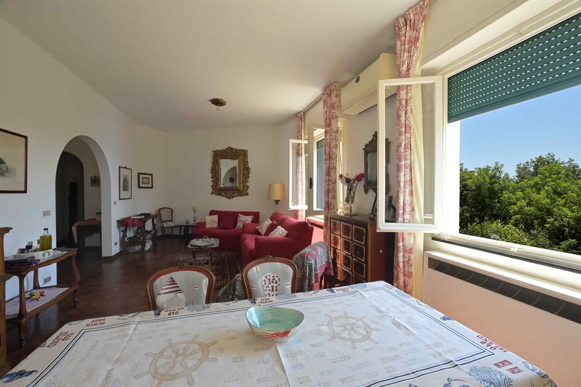 La proprietà è composta da ingresso, disimpegno, soggiorno ampio dal quale si gode di una poetica vista panoramica sulla collina e su tutto il golfo, cucina, due camere da letto entrambe vista mare, due bagni, i sopracitati, terrazzo e giardino prospicienti al lato mare e posto auto privato. Proprietà incantevole e di grande prestigio, la spiaggia è facilmente raggiungibile a piedi, percorrendo la suggestiva antica Strada Romana, per il ritorno ci si può munire di bici elettrica o usufruire del bus cittadino. Aria condizionate e riscaldamento autonomo.