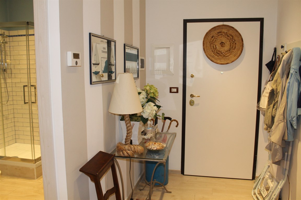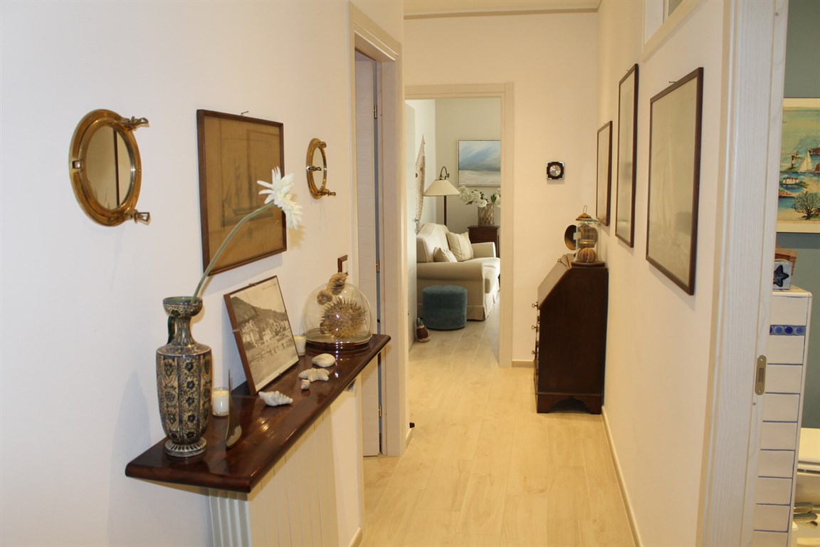a due passi dalle spiagge di Borgo Coscia, vendiamo appartamento al secondo piano con ascensore, di mq. 80 completamente ristrutturato, Aria condizionata, riscaldamento autonomo infissi e serramenti nuovi, dotato di cancelletti e zanzariere. Ottime Rifiniture, composto da soggiorno con balcone vista mare, cucina, due camere da letto e due bagni con doccia, dalla cucina si esce su un magnifico giardino di mq. 100 con grande gazebo con tavolo e sedie in teac e più avanti una gradevole vista mare con due sdraio e tavolino, il giardino e' fornito di piccola fontanella in pietra e più avanti da doccia da giardino dove e' attaccata l'irrigazione temporizzata, sotto casa si ha la possibilità di posteggio libero.