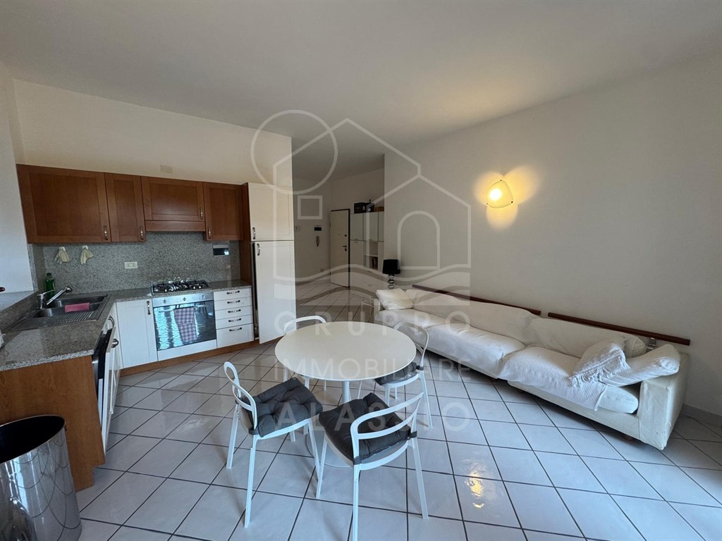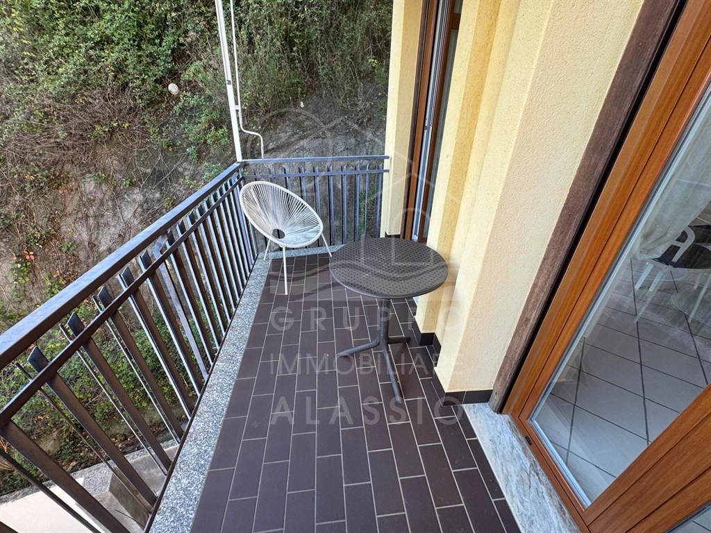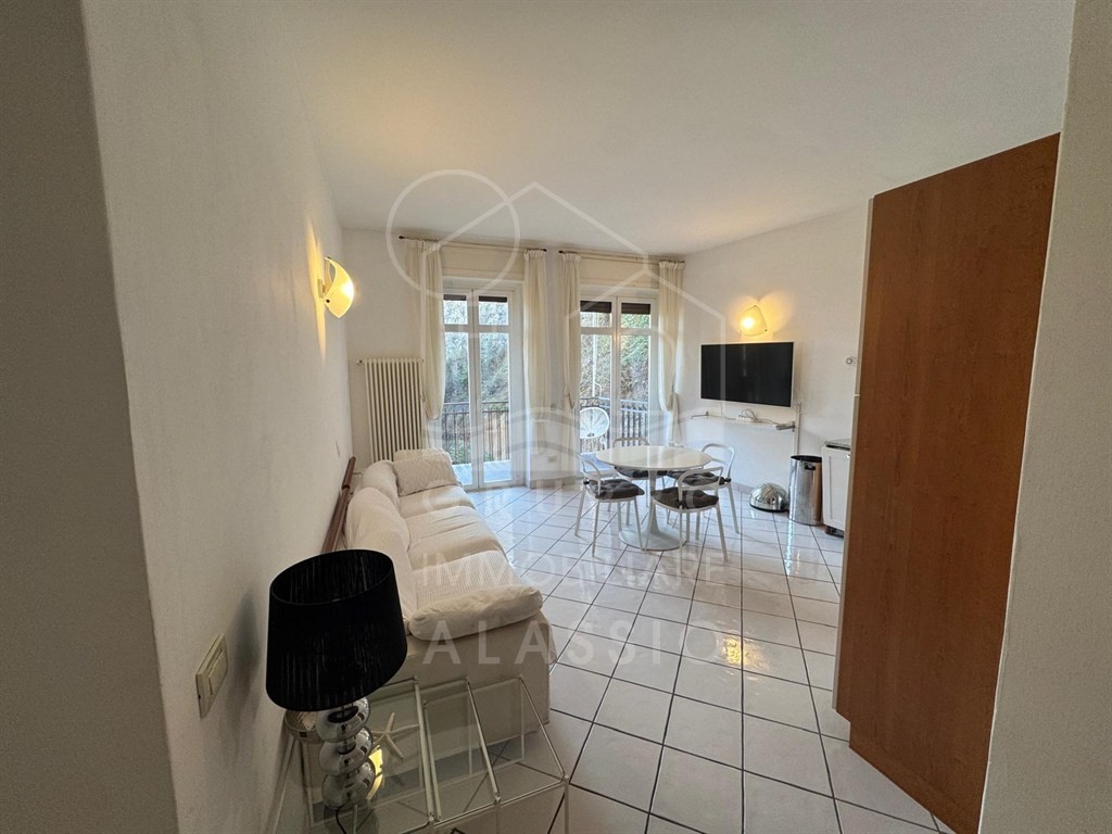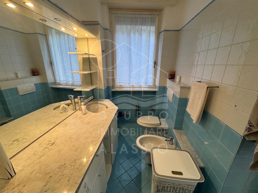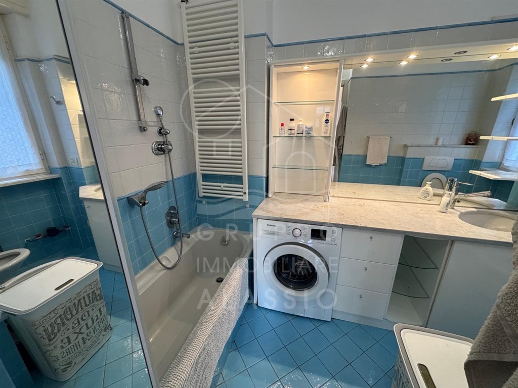 alassio, zona comoda al mare trilocale ristrutturato, piano alto con ascensore composto da soggiorno con angolo cottura, camera matrimoniale, cameretta 2 bagni, balcone vista mare.