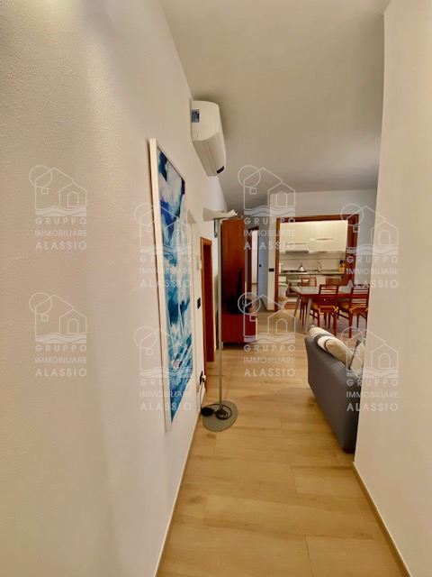L'appartamento si trova in un piccolo condominio con soli 5 alloggi, composto da soggiorno con angolo cottura, due camere, bagno finestrato, ampia terrazza vivibile di 40 mq e box auto singolo presso il Parking Don Bosco di Alassio. Totalmente termoautonomo, con aria condizionata.