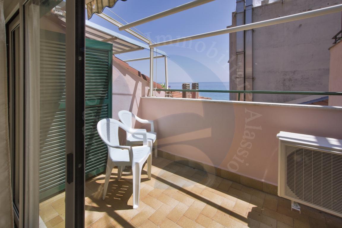 Alassio, a pochi passi dal mare, si vende un ampio bilocale su due livelli, totalmente ristrutturato, composto da ingresso soggiorno con angolo cottura, bagno e terrazzino vista mare, nel soggiorno un divano con letto matrimoniale. Al piano superiore ampia camera da letto matrimoniale con bagno privato e balconcino vista mare. L'appartamento è stato totalmente ristrutturato nel 2014 e contestualmente arredato. Riscaldamento autonomo tradizionale a gas e impianto di climatizzazione.