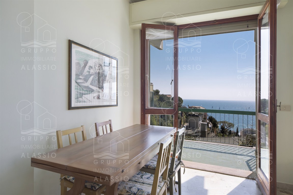 Alassio, zona Solva, proponiamo luminosissimo appartamento con due balconi vista mare. L'appartamento è composto da: ingresso con mobile su misura, due camere da letto matrimoniali, grande bagno con finestra, cucina abitabile con balcone, soggiorno con balcone vista mare e ripostiglio. E' possibile acquistare a parte grande box auto idoneo a contenere due automobili nei pressi dell'appartamento.Richiesta 410.000€