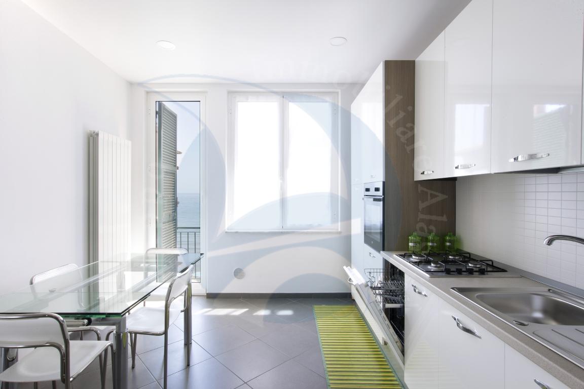 Alassio, a pochi passi dal mare, si vende un ampio bilocale su due livelli, totalmente ristrutturato, composto da ingresso soggiorno con angolo cottura, bagno e terrazzino vista mare, nel soggiorno un divano con letto matrimoniale. Al piano superiore ampia camera da letto matrimoniale con bagno privato e balconcino vista mare. L'appartamento è stato totalmente ristrutturato nel 2014 e contestualmente arredato. Riscaldamento autonomo tradizionale a gas e impianto di climatizzazione.