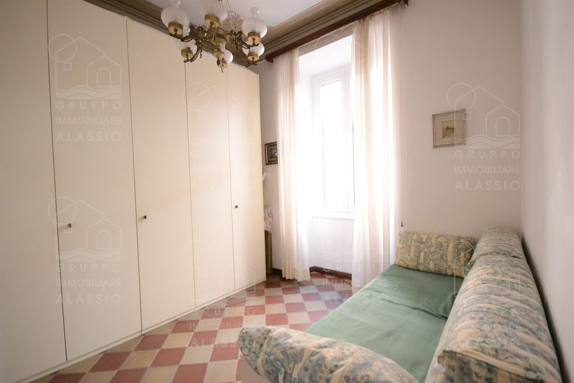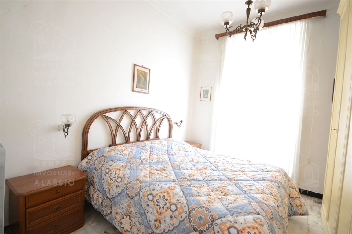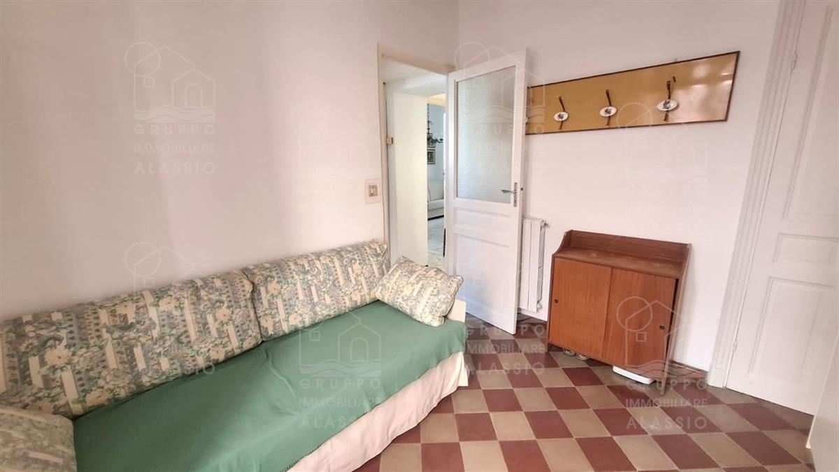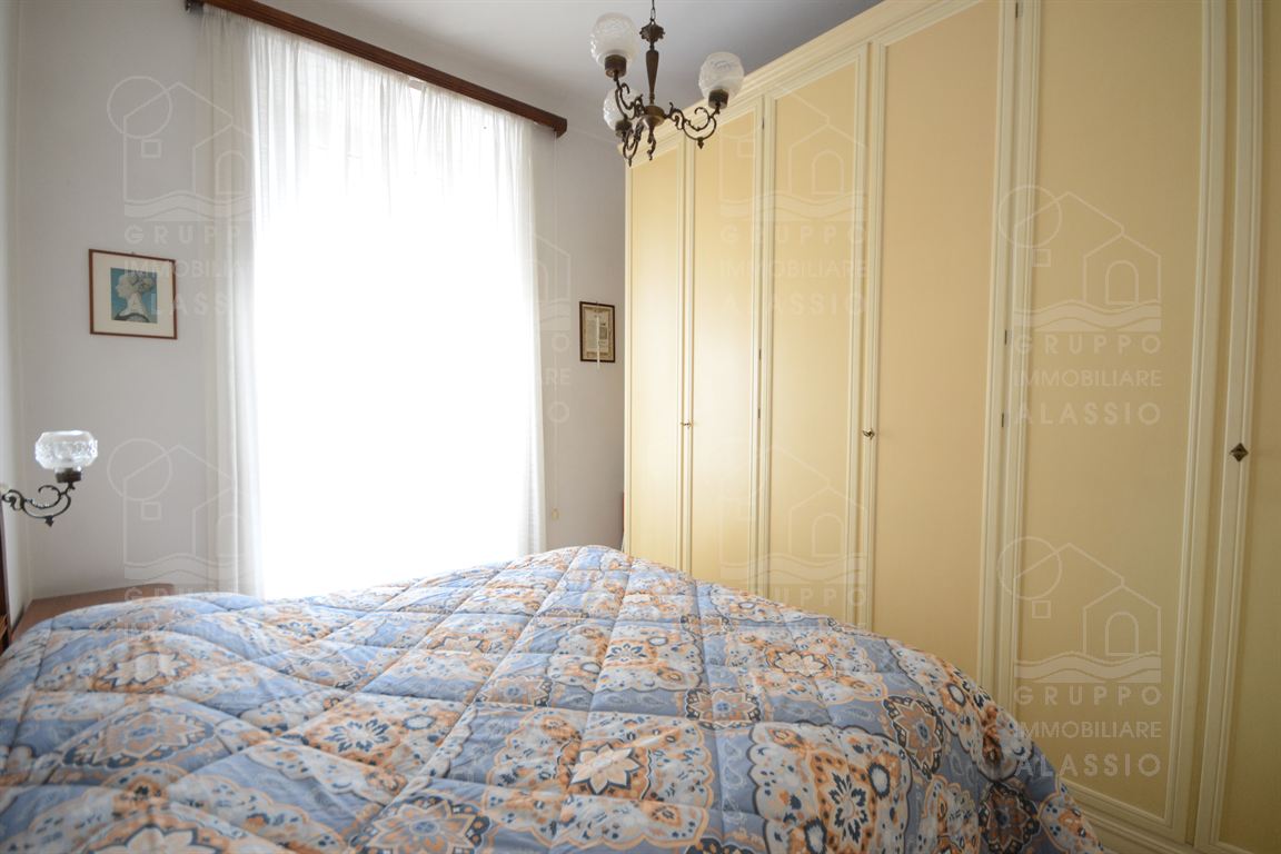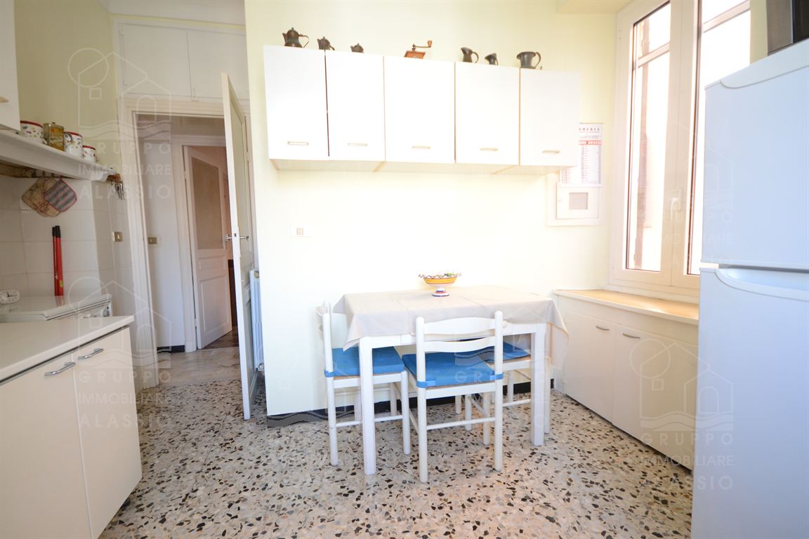 Nel cuore di Alassio, in palazzina d'epoca, al di sotto di Corso Dante abbiamo il piacere di proporre questo piacevole e luminoso appartamento con triplo affaccio e tre balconi.Posto al secondo piano, l'appartamento si compone di: ingresso, soggiorno con doppia finestratura e balcone, cucina con doppia finestra e balconata, camera da letto con balcone, seconda camera da letto con soffitto affrescato, bagno finestrato.L'abitazione di presenta con le caratteristiche d'origine dalla casa, in buono stato di conservazione.Impianto elettrico e bagno sono da rivedere.A pochi passi dalla palazzina, completa la proprietà un magazzino in muratura di metri 1,5 x 3,5 circa con finestra, perfetto per il ricovero di biciclette e moto, più circa 10 mq di area esterna. Termo autonomo, basse spese condominiali.Area parcheggio condominiale con posti non assegnati.