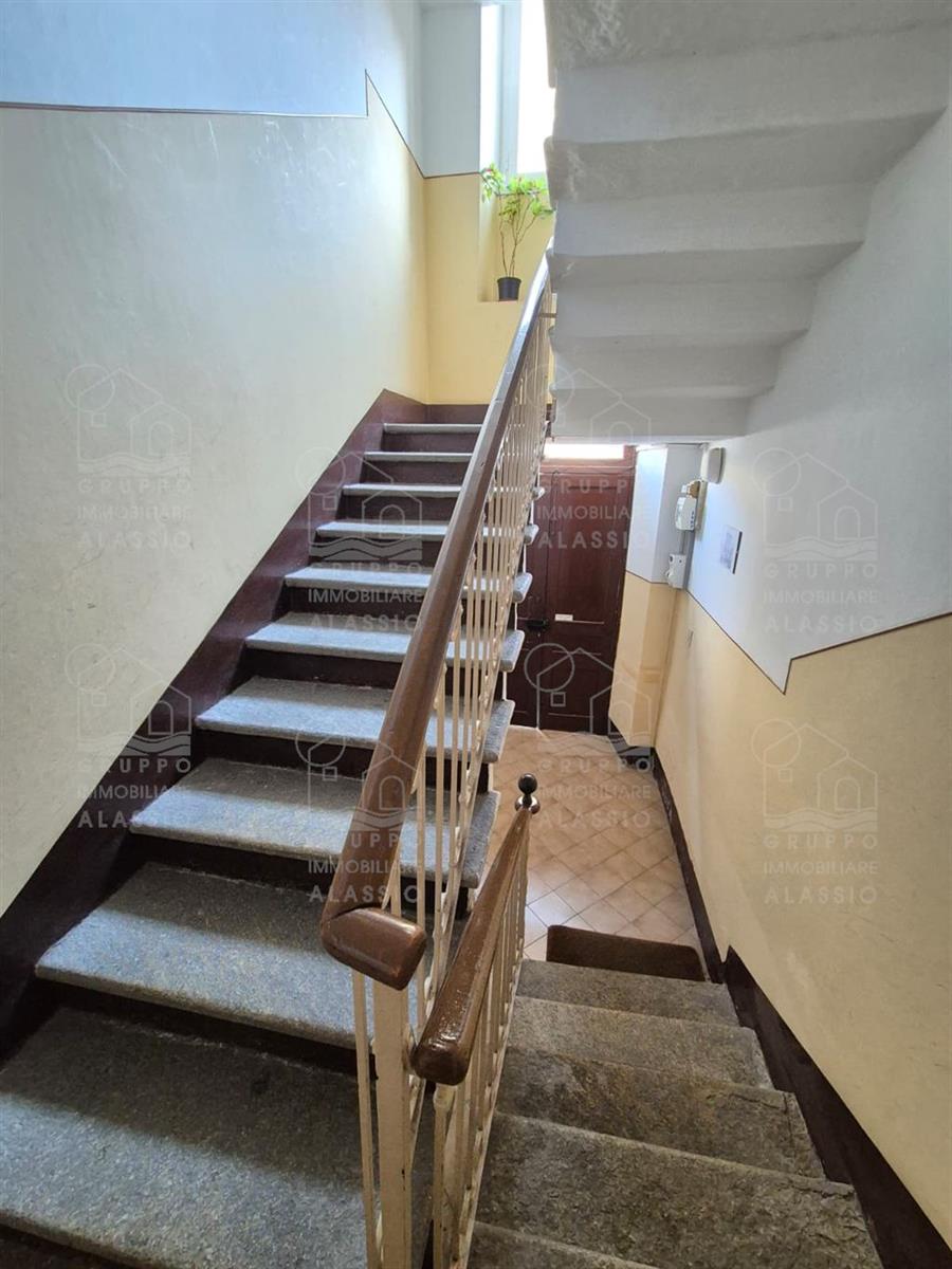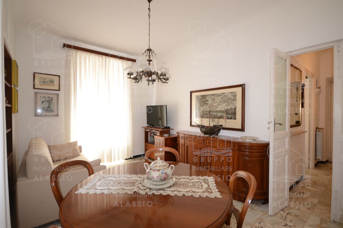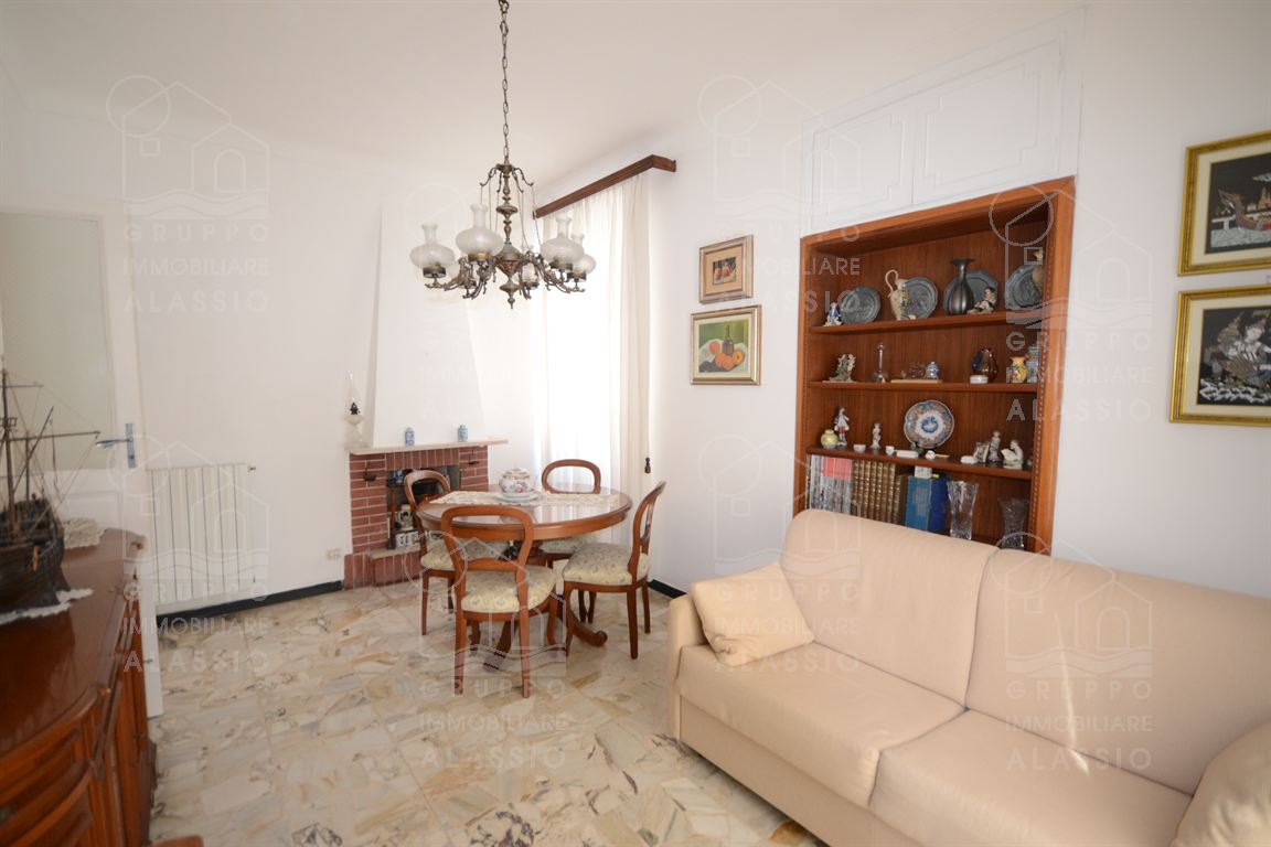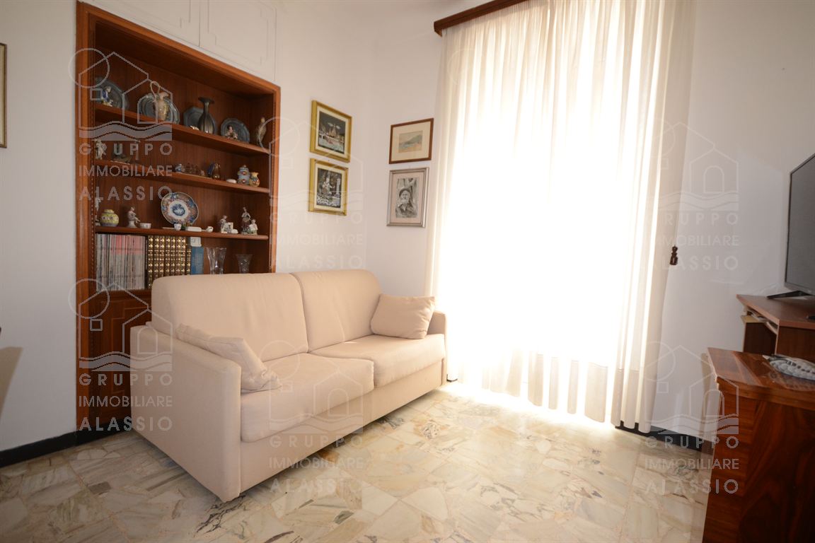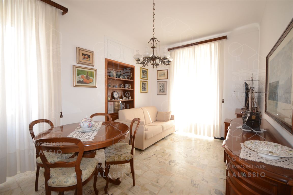 Nel cuore di Alassio, in palazzina d'epoca, al di sotto di Corso Dante abbiamo il piacere di proporre questo piacevole e luminoso appartamento con triplo affaccio e tre balconi.Posto al secondo piano, l'appartamento si compone di: ingresso, soggiorno con doppia finestratura e balcone, cucina con doppia finestra e balconata, camera da letto con balcone, seconda camera da letto con soffitto affrescato, bagno finestrato.L'abitazione di presenta con le caratteristiche d'origine dalla casa, in buono stato di conservazione.Impianto elettrico e bagno sono da rivedere.A pochi passi dalla palazzina, completa la proprietà un magazzino in muratura di metri 1,5 x 3,5 circa con finestra, perfetto per il ricovero di biciclette e moto, più circa 10 mq di area esterna. Termo autonomo, basse spese condominiali.Area parcheggio condominiale con posti non assegnati.