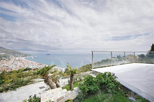 Nella collina alassina, proponiamo in complesso di nuova costruzione alloggio indipendente con vista mare, composto da tre camere, ampio soggiorno con angolo cottura, tre servizi, giardino, terrazzo, solarium e box doppio. Struttura antisismica con isolamenti termo acustici, serramenti a taglio termico, vidocitofono, sistema antintrusione e finiture interne di alto livello.