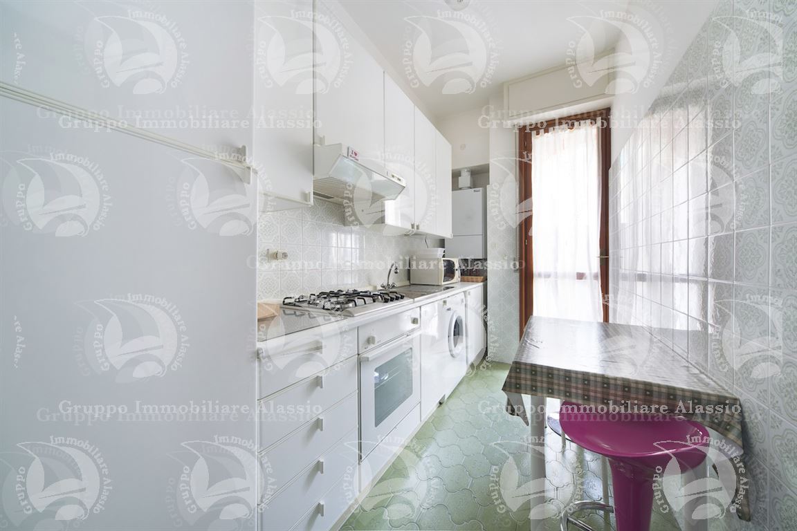 Alassio, in posizione centrale e comoda a tutti i servizi, a circa 250 metri dal mare, proponiamo in vendita spazioso appartamento di circa 75 m² posto al primo piano di una palazzina dotata di ascensore (ma senza fermata al piano).L’immobile è composto da: ingresso su corridoio, luminoso soggiorno, cucinotto separato, camera matrimoniale, camera singola, bagno. Tutti gli ambienti hanno accesso diretto al balcone vivibile a forma semi-angolare, con affaccio sulla via principale, che rimane al riparo dal traffico. Pur presentandosi nello stato originale, l’appartamento è ben tenuto e offre ampie possibilità di personalizzazione. Grazie alla metratura generosa si presta perfettamente sia come abitazione principale che come casa vacanze. Il riscaldamento è autonomo a metano oltre che impianto di condizionamento/risaldamento a soffitto.