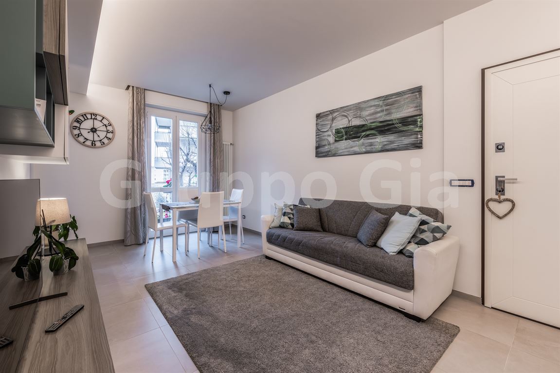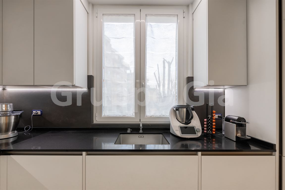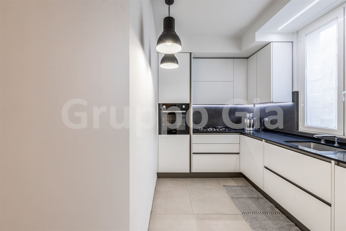 Ristrutturato con cura sartoriale e materiali di pregio, ogni angolo di questo alloggio riflette attenzione e gusto. L’ingresso si apre su un luminoso soggiorno con cucina a vista, un ambiente caldo e accogliente, perfetto per momenti in famiglia o serate con gli amici.