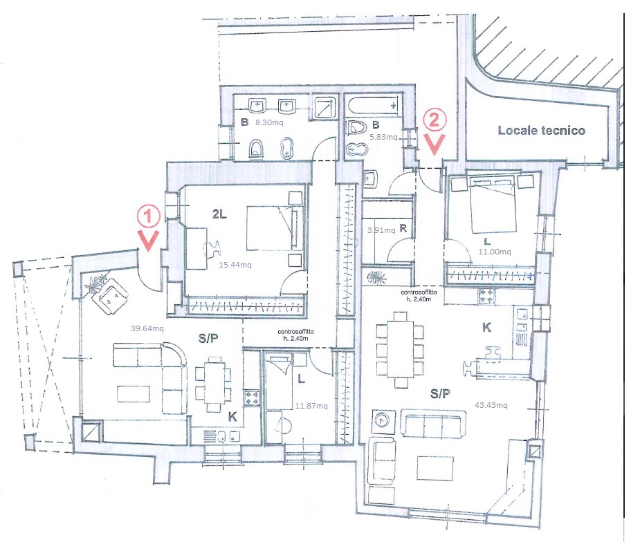 Doppio spazio parcheggio per ciascuna unità abitativa.