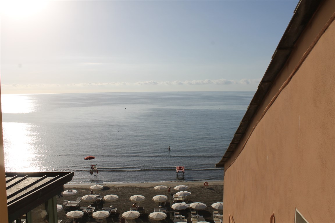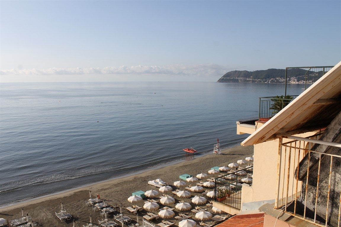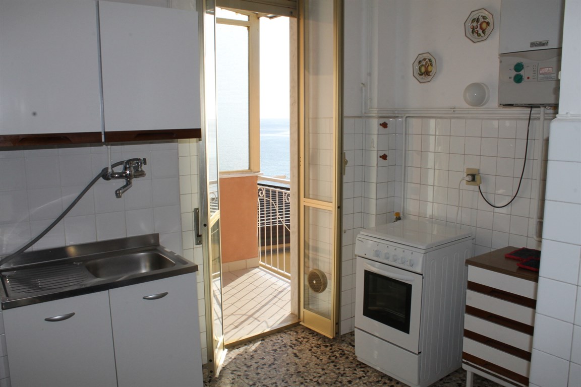 vicinissimo a Piazza Partigiani, alloggio sul mare, ultimo piano con lastrico solare, vista mare, terzo e quarto piano senza ascensore, circa mq. 90 + bilocale sopra da unire con scala interna in fase di ristrutturazione composto da ingresso, cucina con scorcio sul mare, una cameretta, soggiorno, camera matrimoniale e camera con 2 letti, bagno, balcone, termo autonomo.