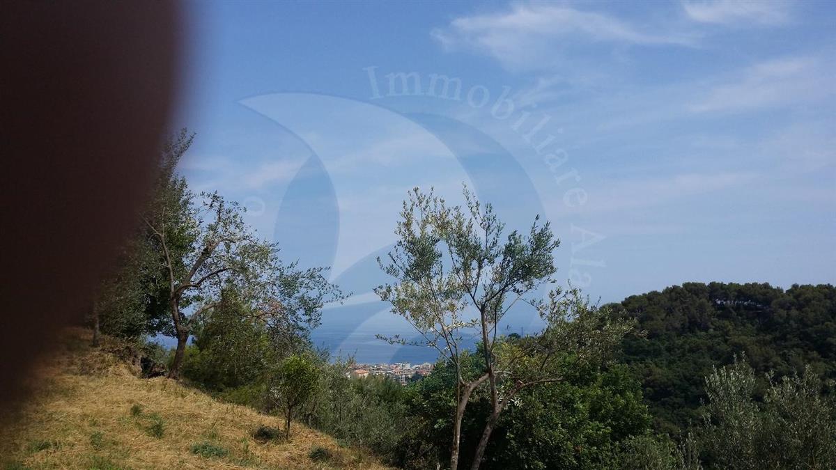 Alassio, sulla collina di Moglio, vendesi terreno, totalmente vista mare, di 3.200 mq. con un progetto in attesa di essere portato a termine, con eventuali variazioni dell'acquirente del terreno, per poi farlo approvare definitivamente, per costruire una villetta su tre livelli, uno interrato + 2 fuori terra. Nel piano interrato è previsto un box di 33 mq., una taverna/locale di sgombero di 47 mq., una cantina di 15 mq., salendo internamente al piano terra, si prevede un soggiorno con angolo cottura, una camera e un bagno, proseguendo al piano superiore, sotto tetto, due locali di sgombero di 12 mq. ognuno, disimpegno, un bagno e un terrazzino.
