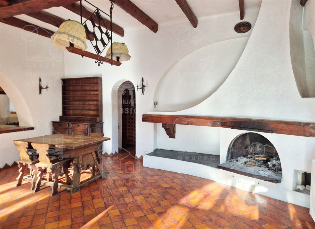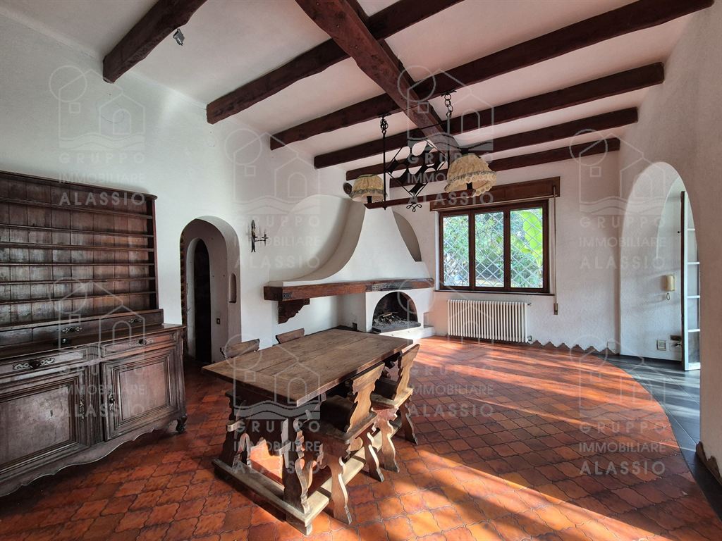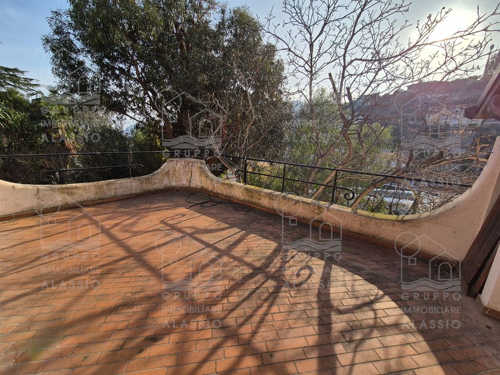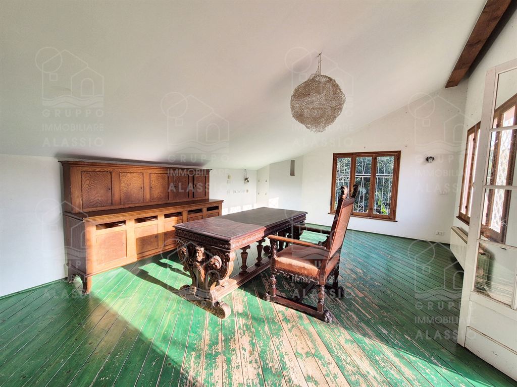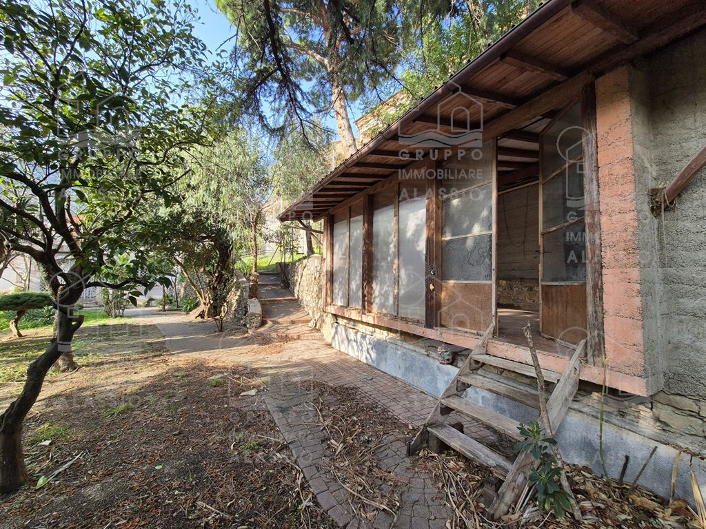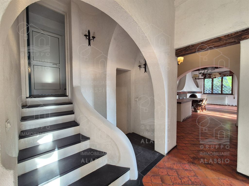 Alassio, porzione indipendente di Villa, terra - cielo, con parco privato e scorcio di vista mare.A meno di 1 km dal mare, in posizione soleggiata, la villa è disposta su due ampi livelli.Al piano terra si è accolti da una luminosa sala angolare con ampie vetrate su entrambi i lati e vista diretta sul parco. Oltre la sala ci aspettano una grande zona pranzo con caminetto artigianale e la zona cucina.Seguono due camere matrimoniali , un bagno finestrato ed un grande ripostiglio / dispensa.Il piano superiore è stato utilizzato come se fosse un appartamento a sé stante. Qui domina il grande e luminoso salone con cucina a vista e doppio accesso al grande terrazzo soleggiato.Seguono una camera da letto matrimoniale ed una stanza da bagno con una grande vasca a livello del pavimento.All'interno del parco privato troviamo poi una sfiziosa dependance di circa 50 mq, da ristrutturare.Il parco è uno spazio verde di elevato pregio, caratterizzato da ampi spazi e magnifici alberi.Un'oasi ideale dove rilassarsi, far giocare i bambini, fare feste con gli amici e indispensabile spazio per i nostri amici a quattro zampe.Gli amanti dell'acqua saranno contenti di sapere che c'è la possibilità di realizzare una piscina.Completano questa esclusiva dimora due box auto.