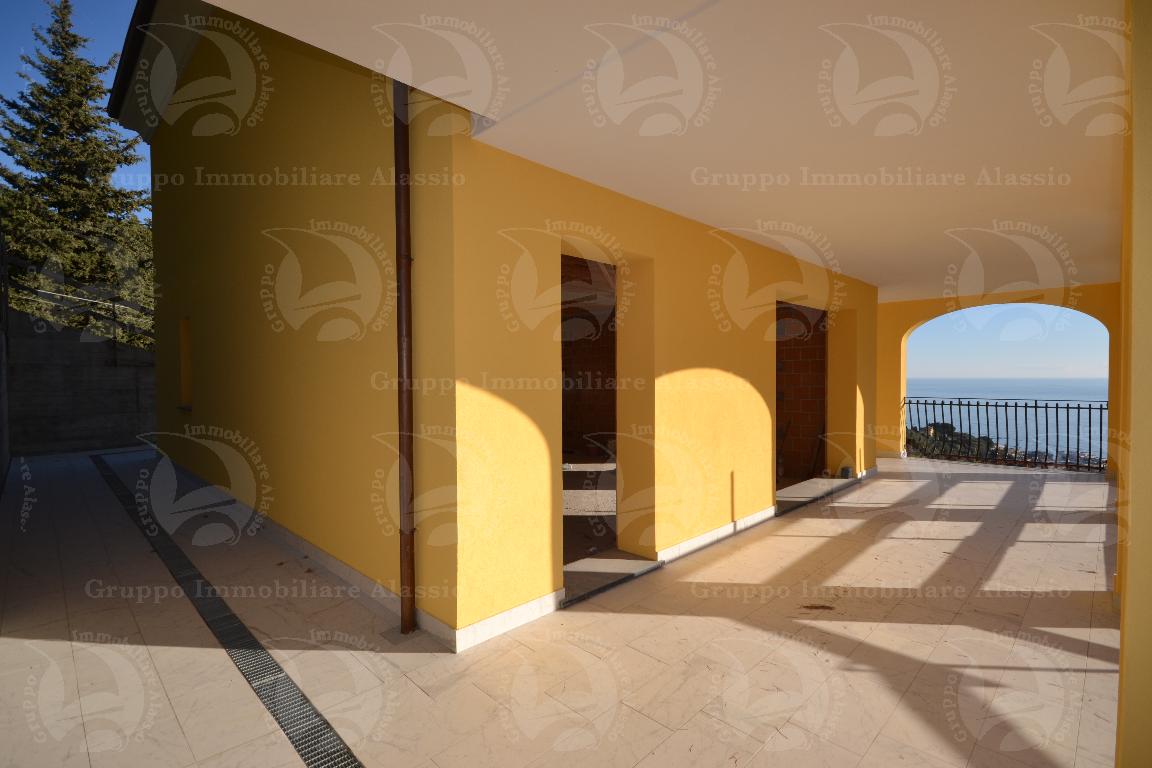 Alassio, nuova villa con magnifica vista mare e dell'isola Gallinara. A meno di 5 minuti dal centro, la villa è stata pensata e progettata per fornire ai suoi fortunati possessori ed ospiti tutte le piacevolezze della magnifica posizione e tutti i confort e gli accessori per godersi al meglio il suo splendido affaccio verso mare: il grande e fresco porticato, lo spazioso terrazzo angolare al primo piano, la zona giardino con la cucina d'estate, il luminoso salone con vetrate vista mare e vista giardino, un'area per l'eventuale piscina ed il solarium, le camere principali con vista mare, tutti i bagni finestrati.E, ancora, un'ampia autorimessa, un grande seminterrato con due aperture verso l'area piscina, lo spazio per le auto degli ospiti.Divisioni interne e materiali personalizzabili. Possibilità di creare due appartamenti. Da terminare.