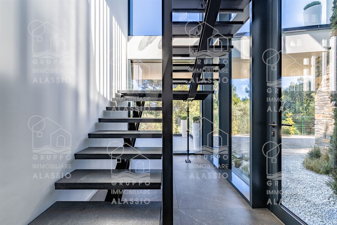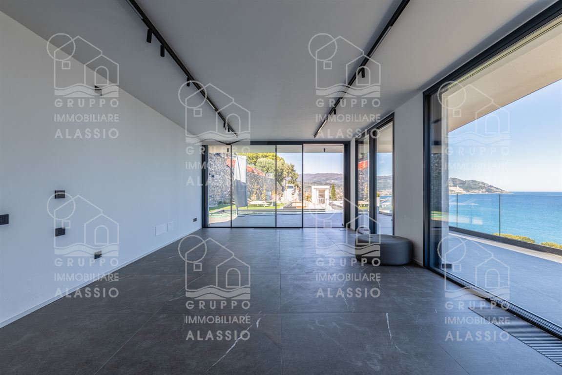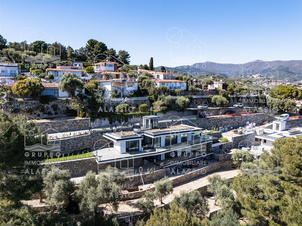 VILLA DI LUSSO CON PISCINA A SFIORO E VISTA MARE – RIVIERA LIGUREDove la casa incontra l’orizzonte.In posizione dominante e riservata, immersa tra gli uliveti della splendida Riviera ligure, proponiamo in vendita una prestigiosa villa contemporanea con vista mare frontale sul Golfo Dianese.La proprietà si sviluppa su un terreno panoramico di circa 3.000 m² e offre 230 m² abitativi, oltre a ampie terrazze per 340 m², progettate per valorizzare al massimo il dialogo tra architettura e paesaggio.La villa nasce da un perfetto equilibrio tra design contemporaneo e tradizione mediterranea: le eleganti murature in pietra naturale si integrano armoniosamente con le grandi vetrate, che incorniciano il mare e garantiscono una luminosità straordinaria in ogni ambiente.Il cuore della casa è rappresentato da una scenografica zona living open space, ampia e raffinata, pensata per vivere momenti di convivialità e relax in totale continuità con gli spazi esterni. Le camere da letto, luminose ed eleganti, offrono ambienti di comfort e privacy, mentre i bagni di design sono realizzati con materiali di alta qualità e soluzioni moderne.All’esterno, la spettacolare piscina a sfioro vista mare diventa elemento distintivo della proprietà, creando un effetto di continuità visiva con l’orizzonte e regalando un’esperienza abitativa unica.Completano la proprietà:-accesso privato-fino a 8 posti auto-impianto fotovoltaico-riscaldamento a pavimento-climatizzazione con VMC-domotica, videosorveglianza e sistema di allarmeSituata a pochi minuti da Diano Marina, una delle località più apprezzate del Ponente ligure per clima mite e qualità della vita, la villa rappresenta una soluzione ideale sia come residenza principale che come esclusiva casa vacanze.Una proprietà rara, pensata per chi desidera vivere il mare ogni giorno, in un contesto di assoluta privacy, comfort e bellezza.