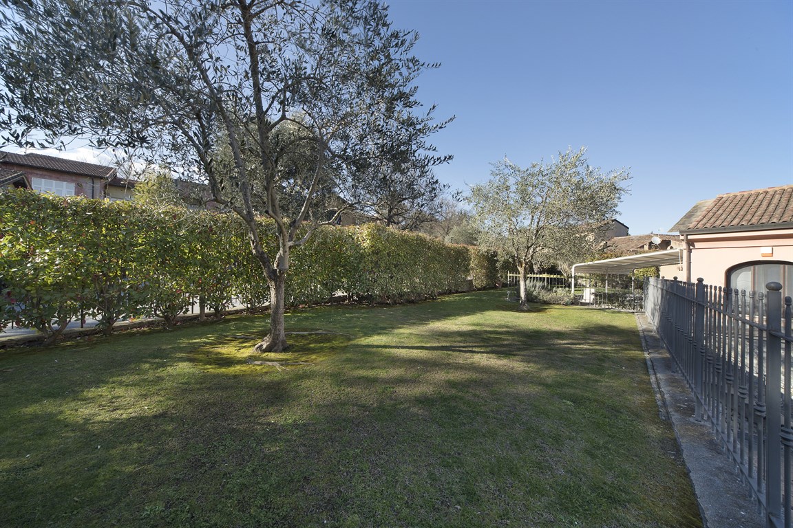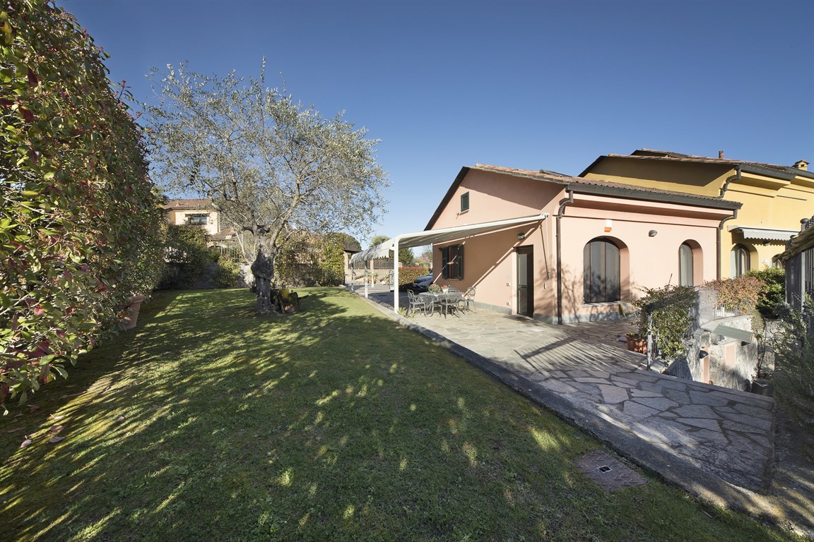 Garlenda, immersa nel verde del golf viene proposta in vendita una villetta su tre livelli, piano terra con ampio soggiorno, zona cucina, una camera da letto matrimoniale e bagno con finestra; al primo piano unica grande camera mansardata, nel seminterrato, che ha doppio accesso, dal box o dal piano terra, troviamo un ampio box di 25 mq., dal box si accede alla cantina, dalla quale si passa ad un apio magazzino, adesso adibito in parte in comoda camera, il resto troviamo un divano e una zona stireria, altro localino con bagno/lavanderia. Per accedere al box vi é un cancello automatico privato che delimita anche lo spazio per un posto auto antistante alla saracinesca, come si potrà vedere dalle foto. Ulteriore cancello motorizzato lo troviamo nella zona piano terra per accedere al terrazzo/cortile con all'interno ulteriori posto auto, antistante all'ingresso é stata istallata una tenda scorrevole che copre un'area di 24 mq. Completa la proprietà un piacevole e curatissimo giardino a prato inglese con all'interno alcuni ulivi, chiaramente il giardino é dotato di impianto d'irrigazione automatico. La villetta ha il riscaldamento autonomo a gas e antifurto totale.